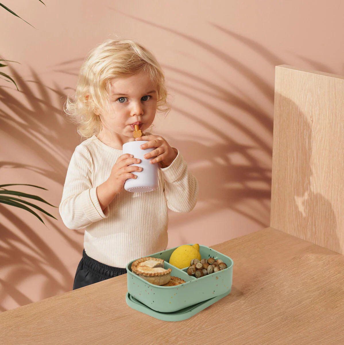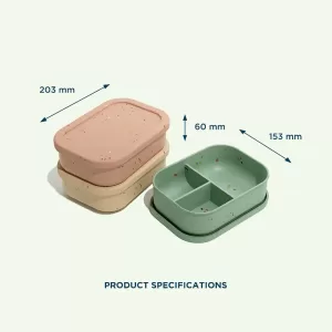 No-Tox Silicone Bento Lunch Box – 3 Compartments – Confetti Pink (715ml)