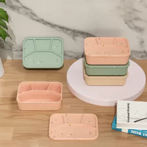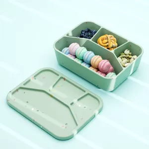 No-Tox Silicone Bento Lunch Box – 4 Compartments – Confetti Olive (1.2L)