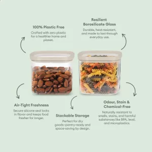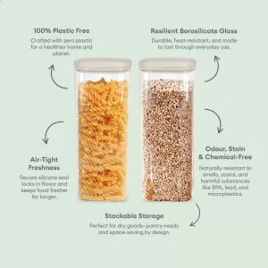 Cube Glass Pantry Storage Jars – 2 Pack (2340ml)